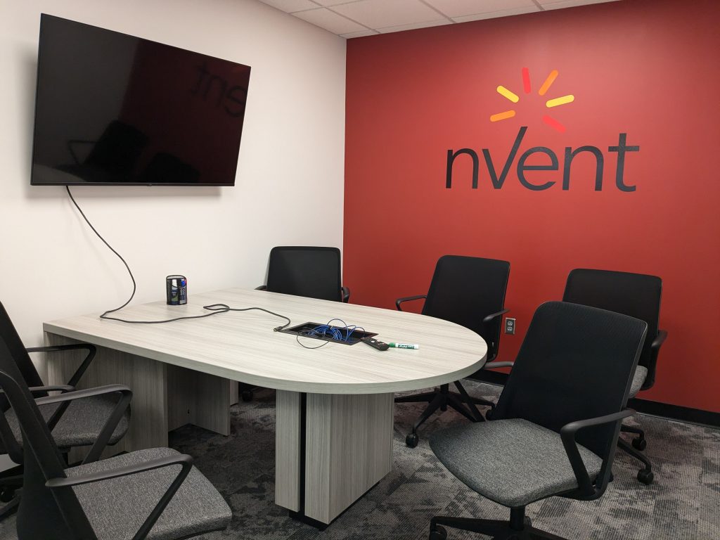 Meyer Group was hired by nVent to perform renovations, re-branding and upgrades to the offices of nVent Manufacturing in Anoka, Minnesota. The project involved reconfiguring the layout and creating a modern openplan workspace that fosters collaboration and innovation. To complement the new layout, the outdated elements like walls, flooring, ceilings, and light fixtures were replaced with stylish and functional choices. The project also included refreshing the existing restrooms with new finishes, creating a more inviting and updated environment for nVent’s employees.